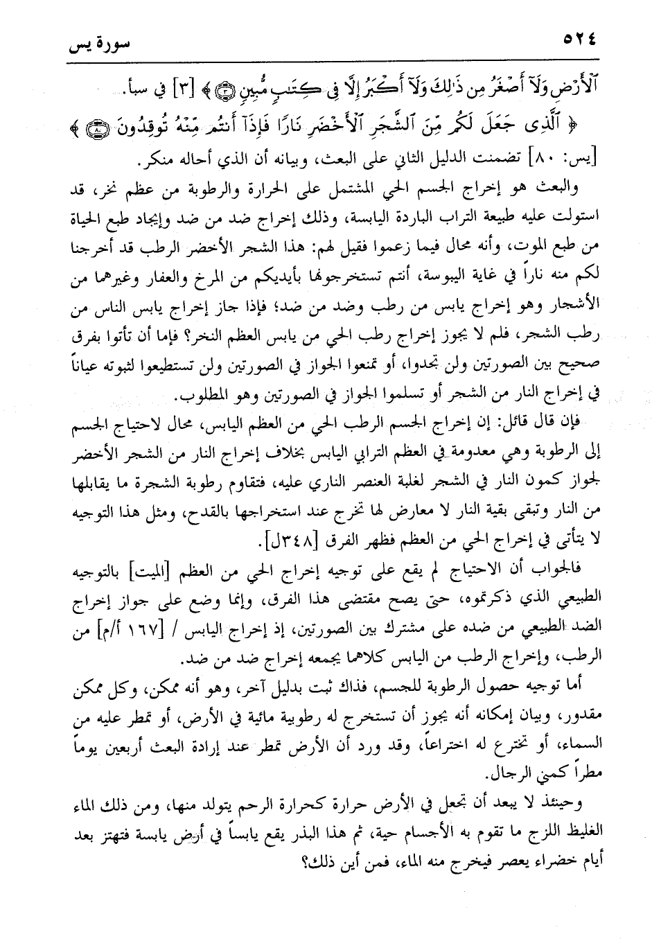 {الَّذِي جَعَلَ لَكُمْ مِنَ الشَّجَرِ الْأَخْضَرِ ناراً فَإِذا أَنْتُمْ مِنْهُ تُوقِدُونَ} (80) [يس: 80] تضمنت الدليل الثاني على البعث، وبيانه أن الذي أحاله منكر.