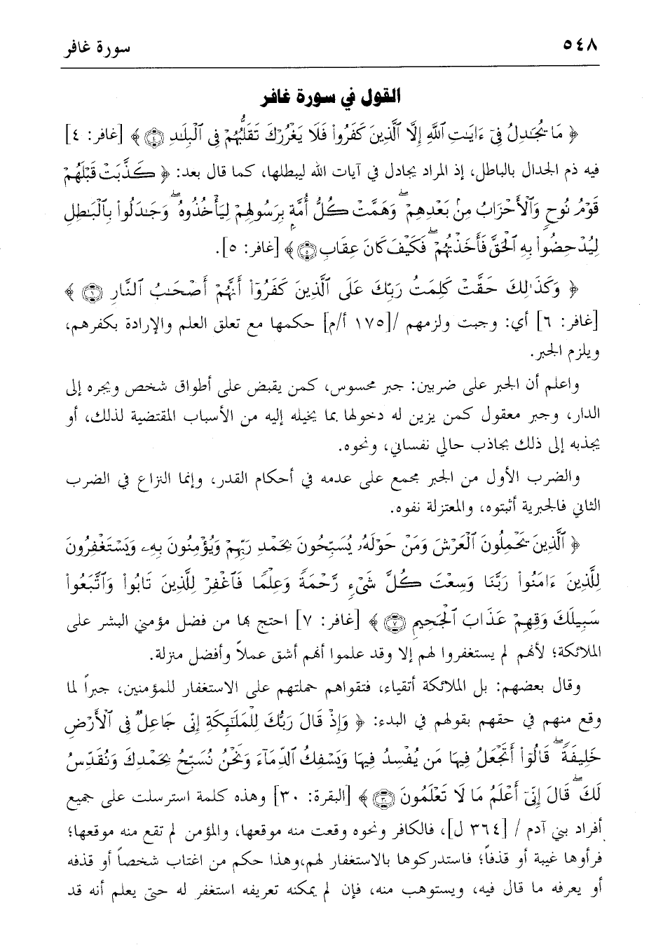 {وَكَذلِكَ حَقَّتْ كَلِمَةُ رَبِّكَ عَلَى الَّذِينَ كَفَرُوا أَنَّهُمْ أَصْحابُ النّارِ} (6) [غافر: 6] أي: وجبت ولزمهم/ [175 أ/م] حكمها مع تعلق العلم والإرادة بكفرهم، ويلزم الجبر.