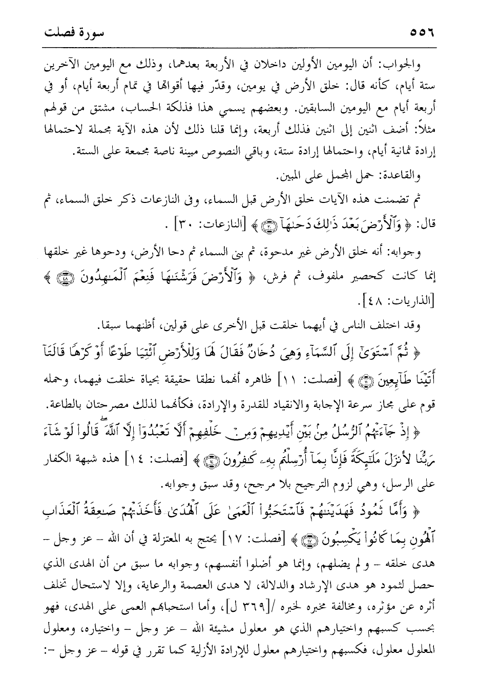 والجواب: أن اليومين الأولين داخلان في الأربعة بعدهما، وذلك مع اليومين الآخرين ستة أيام، كأنه قال: خلق الأرض في يومين، وقدّر فيها أقواتها في تمام أربعة أيام، أو في أربعة أيام مع اليومين السابقين. وبعضهم يسمي هذا فذلكة الحساب، مشتق من قولهم مثلا: أضف اثنين إلى اثنين فذلك أربعة، وإنما قلنا ذلك لأن هذه الآية مجملة لاحتمالها إرادة ثمانية أيام، واحتمالها إرادة ستة، وباقي النصوص مبينة ناصة مجمعة على الستة.