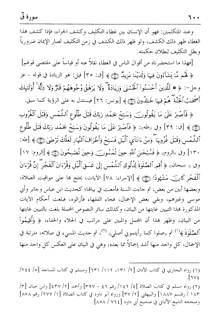 {فَاصْبِرْ عَلى ما يَقُولُونَ وَسَبِّحْ بِحَمْدِ رَبِّكَ قَبْلَ طُلُوعِ الشَّمْسِ وَقَبْلَ الْغُرُوبِ} (39) [ق: 39] وفي «طه»: {فَاصْبِرْ عَلى ما يَقُولُونَ وَسَبِّحْ بِحَمْدِ رَبِّكَ قَبْلَ طُلُوعِ الشَّمْسِ وَقَبْلَ غُرُوبِها وَمِنْ آناءِ اللَّيْلِ فَسَبِّحْ وَأَطْرافَ النَّهارِ لَعَلَّكَ تَرْضى} (130) [طه: