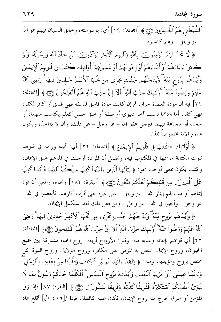 {لا تَجِدُ قَوْماً يُؤْمِنُونَ بِاللهِ وَالْيَوْمِ الْآخِرِ يُوادُّونَ مَنْ حَادَّ اللهَ وَرَسُولَهُ وَلَوْ كانُوا آباءَهُمْ أَوْ أَبْناءَهُمْ أَوْ إِخْوانَهُمْ أَوْ عَشِيرَتَهُمْ أُولئِكَ كَتَبَ فِي قُلُوبِهِمُ الْإِيمانَ وَأَيَّدَهُمْ بِرُوحٍ مِنْهُ وَيُدْخِلُهُمْ جَنّاتٍ تَجْرِي مِنْ تَحْتِهَا الْأَنْهارُ خالِدِينَ فِيها رَضِيَ اللهُ عَنْهُمْ وَرَضُوا عَنْهُ أُولئِكَ حِزْبُ اللهِ أَلا إِنَّ حِزْبَ اللهِ هُمُ الْمُفْلِحُونَ} (22) [المجادلة:
