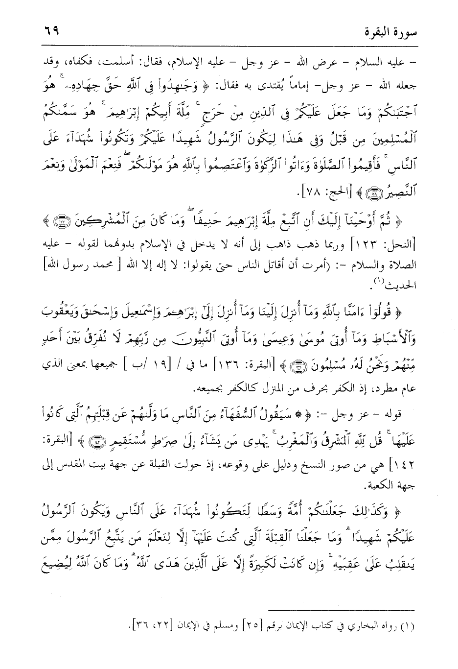 {ثُمَّ أَوْحَيْنا إِلَيْكَ أَنِ اِتَّبِعْ مِلَّةَ إِبْراهِيمَ حَنِيفاً وَما كانَ مِنَ الْمُشْرِكِينَ} (123) [النحل: 123] وربما ذهب ذاهب إلى أنه لا يدخل في الإسلام بدونهما لقوله-عليه الصلاة والسّلام-: (أمرت أن أقاتل الناس حتى يقولوا: لا إله إلا الله [محمد رسول الله] الحديث (1).