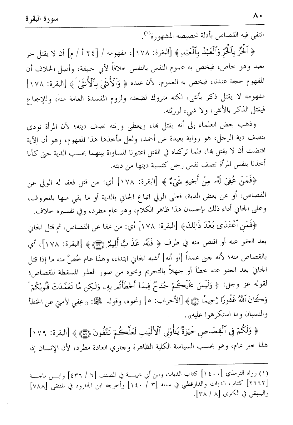 {وَلَكُمْ فِي الْقِصاصِ حَياةٌ يا أُولِي الْأَلْبابِ لَعَلَّكُمْ تَتَّقُونَ} (179) [البقرة: 179] هذا خبر عام، وهو بحسب السياسة الكلية الظاهرة وجاري العادة مطرد؛ لأن الإنسان إذا