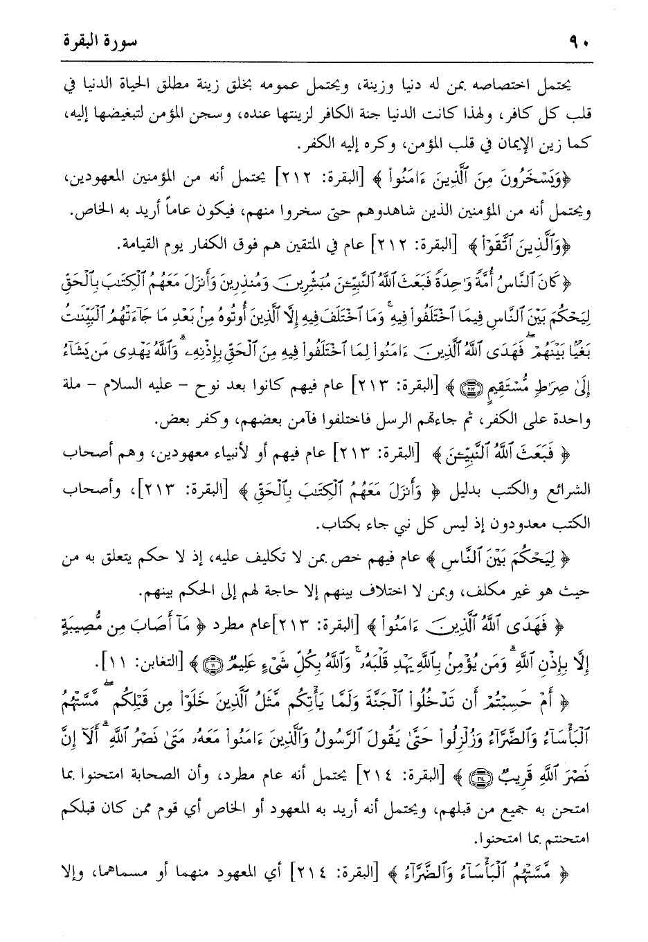 {كانَ النّاسُ أُمَّةً واحِدَةً فَبَعَثَ اللهُ النَّبِيِّينَ مُبَشِّرِينَ وَمُنْذِرِينَ وَأَنْزَلَ مَعَهُمُ الْكِتابَ بِالْحَقِّ لِيَحْكُمَ بَيْنَ النّاسِ فِيمَا اِخْتَلَفُوا فِيهِ وَمَا اِخْتَلَفَ فِيهِ إِلاَّ الَّذِينَ أُوتُوهُ مِنْ بَعْدِ ما جاءَتْهُمُ الْبَيِّناتُ بَغْياً بَيْنَهُمْ فَهَدَى اللهُ الَّذِينَ آمَنُوا لِمَا اِخْتَلَفُوا فِيهِ مِنَ الْحَقِّ بِإِذْنِهِ وَاللهُ يَهْدِي مَنْ يَشاءُ إِلى صِراطٍ مُسْتَقِيمٍ} (213) [البقرة: 213] عام فيهم كانوا بعد نوح-عليه السّلام-ملة واحدة على الكفر، ثم جاءتهم الرسل فاختلفوا فآمن بعضهم، وكفر بعض.