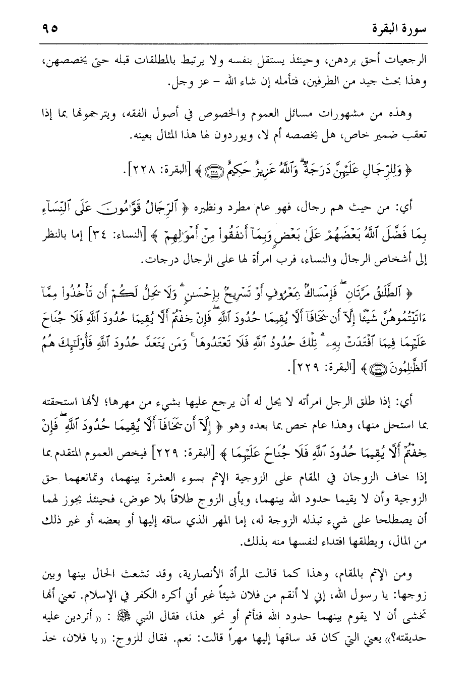 {الطَّلاقُ مَرَّتانِ فَإِمْساكٌ بِمَعْرُوفٍ أَوْ تَسْرِيحٌ بِإِحْسانٍ وَلا يَحِلُّ لَكُمْ أَنْ تَأْخُذُوا مِمّا آتَيْتُمُوهُنَّ شَيْئاً إِلاّ أَنْ يَخافا أَلاّ يُقِيما حُدُودَ اللهِ فَإِنْ خِفْتُمْ أَلاّ يُقِيما حُدُودَ اللهِ فَلا جُناحَ عَلَيْهِما فِيمَا اِفْتَدَتْ بِهِ تِلْكَ حُدُودُ اللهِ فَلا تَعْتَدُوها وَمَنْ يَتَعَدَّ حُدُودَ اللهِ فَأُولئِكَ هُمُ الظّالِمُونَ} (229) [البقرة: 229].