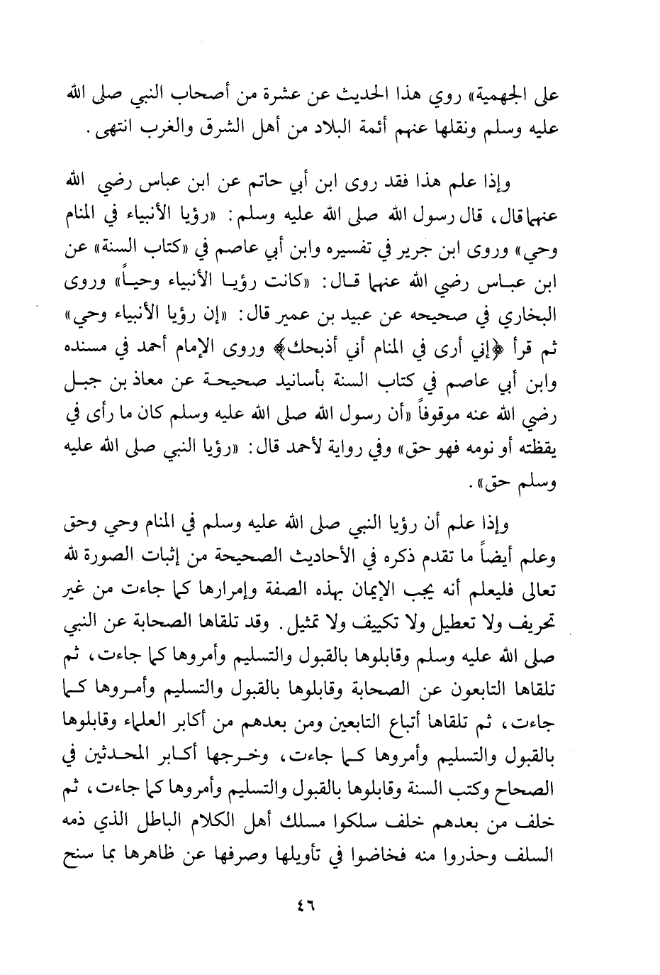 وإذا علم أن رؤيا النبي صلى الله عليه وسلم في المنام وحي وحق وعلم أيضاً ما تقدم ذكره في الأحاديث الصحيحة من إثبات الصورة لله تعالى فليعلم أنه يجب الإيمان بهذه الصفة وإمرارها كما جاءت من غير تحريف ولا تعطيل ولا تكييف ولا تمثيل. وقد تلقاها الصحابة عن النبي صلى الله عليه وسلم وقابلوها بالقبول والتسليم وأمروها كما جاءت، ثم تلقاها التابعون عن الصحابة وقابلوها بالقبول والتسليم وأمروها كما جاءت، ثم تلقاها أتباع التابعين ومن بعدهم من أكابر العلماء وقابلوها بالقبول والتسليم وأمروها كما جاءت، وخرجها أكابر المحدثين في الصحاح وكتب السنة وقابلوها بالقبول والتسليم وأمروها كما جاءت، ثم خلف من بعدهم خلف سلكوا مسلك أهل الكلام الباطل الذي ذمه السلف، وحذروا منه فخاضوا في تأويلها وصرفها عن ظاهرها بما سنح