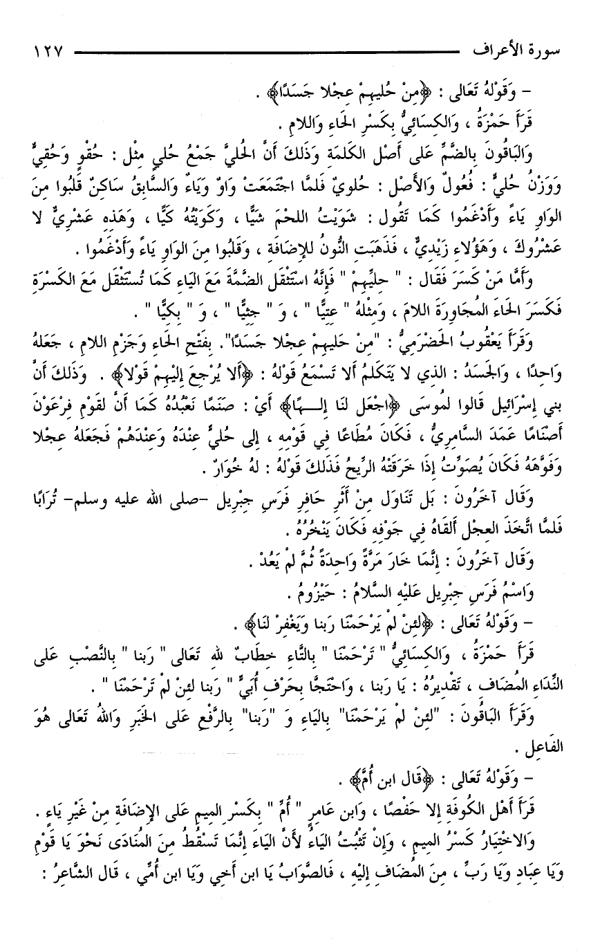 - وَقَوْلُهُ تَعَالَى: {مِنْ حُلِّيِهِمْ عِجْلًا جَسَدًا}.