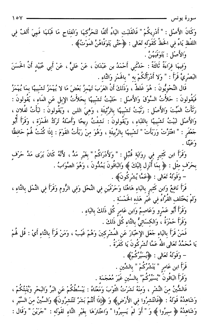 وَقَرَأَ ابْنُ كَثِيرٍ فِي رِوَايَةِ قُنْبُلٍ: «وَلَأَدْرَاكُمْ» بِغَيْرِ مَدٍّ، لِأَنَّهُ كَانَ يَرَى مَدَّ حَرْفٍ بِحَرْفٍ مِثْلَ: {بِمَا أُنْزِلَ إِلَيْكَ} وَالْبَاقُونَ يَمُدُّونَ، وَهُوَ الصَّوَابُ.