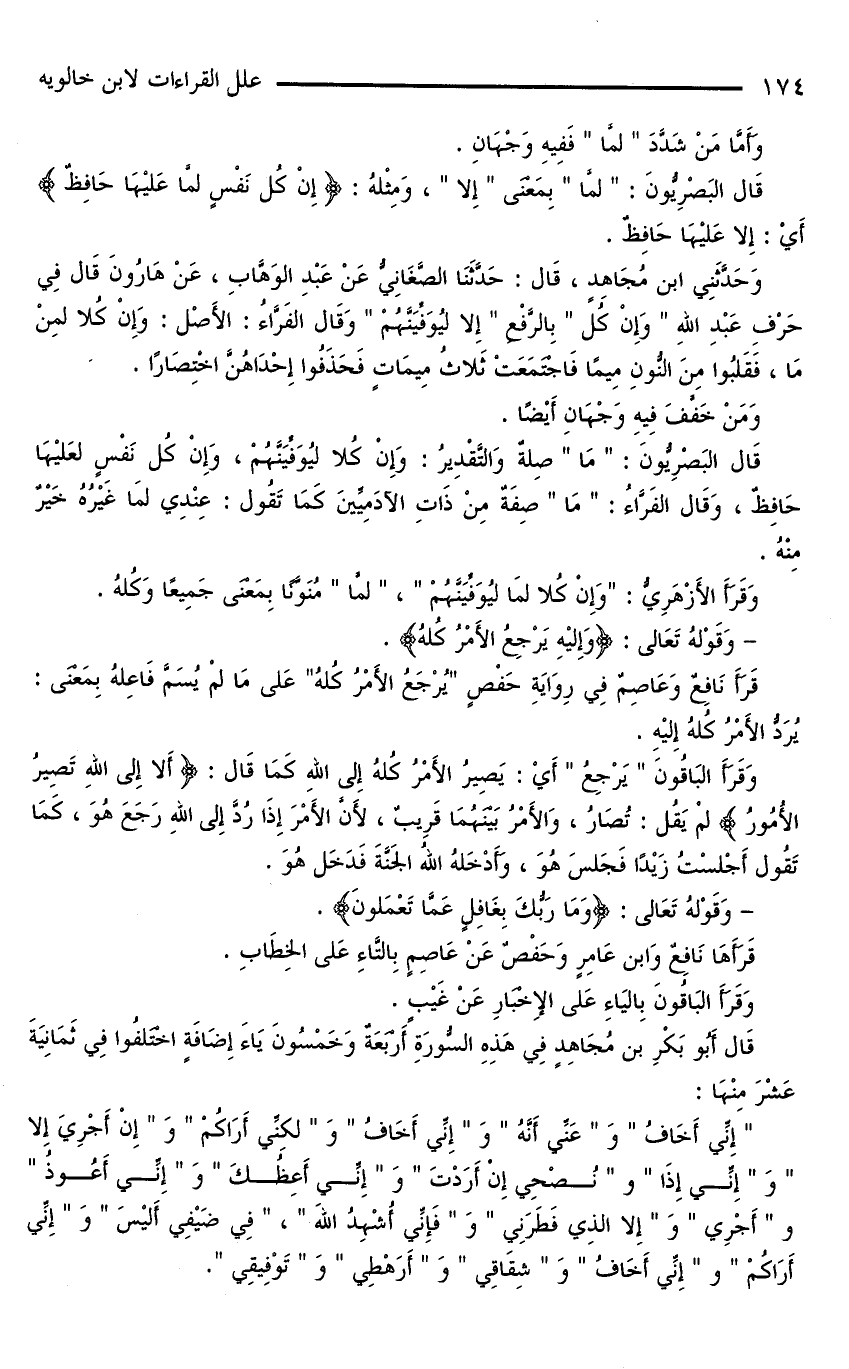 وَحَدَّثَنِي ابْنُ مُجَاهِدٍ، قَالَ: حَدَّثَنَا الصَّغَانِيُّ عَنْ عَبْدِ الْوَهَّابِ، عَنْ هَارُونَ قَالَ فِي حَرْفِ عَبْدِ اللَّهِ «وَإِنْ كُلٌّ» بِالرَّفْعِ «إِلَّا لَيُوَفِّيَنَّهُمْ» وَقَالَ الْفَرَّاءُ: الْأَصْلُ: وَإِنْ كُلًّا لَمِنْ مَا، فَقَلَبُوا مِنَ النُّونِ مِيمًا فَاجْتَمَعَتْ ثَلَاثُ مِيمَاتٍ فَحَذَفُوا إِحْدَاهُنَّ اخْتِصَارًا.