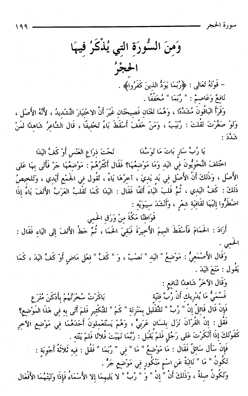فَقُلْ: إِنَّ القرآن نزل بلسان عربي، وَهُمْ يَسْتَعْمِلُونَ أَحَدَهُمَا فِي مَوْضِعِ الْآخِرِ كَقَوْلِكَ إِذَا أَنْكَرْتَ عَلَى رَجُلٍ فَلَمْ يَقْبَلْ: رُبَّمَا نَهَيْتَ فُلَانًا فَلَمْ يَنْتَهِ.