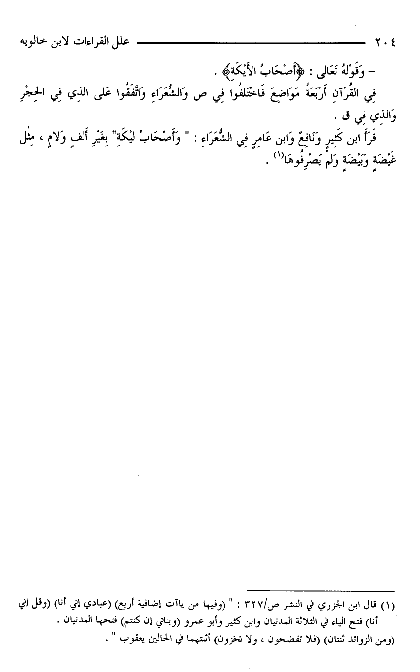 قَرَأَ ابْنُ كَثِيرٍ وَنَافِعٌ وَابْنُ عَامِرٍ فِي الشُّعَرَاءِ: «وَأَصْحَابُ لَيْكَةِ» بِغَيْرِ أَلِفٍ وَلَامٍ، مثل غيضة وبيضة ولم يصرفوها (¬١).