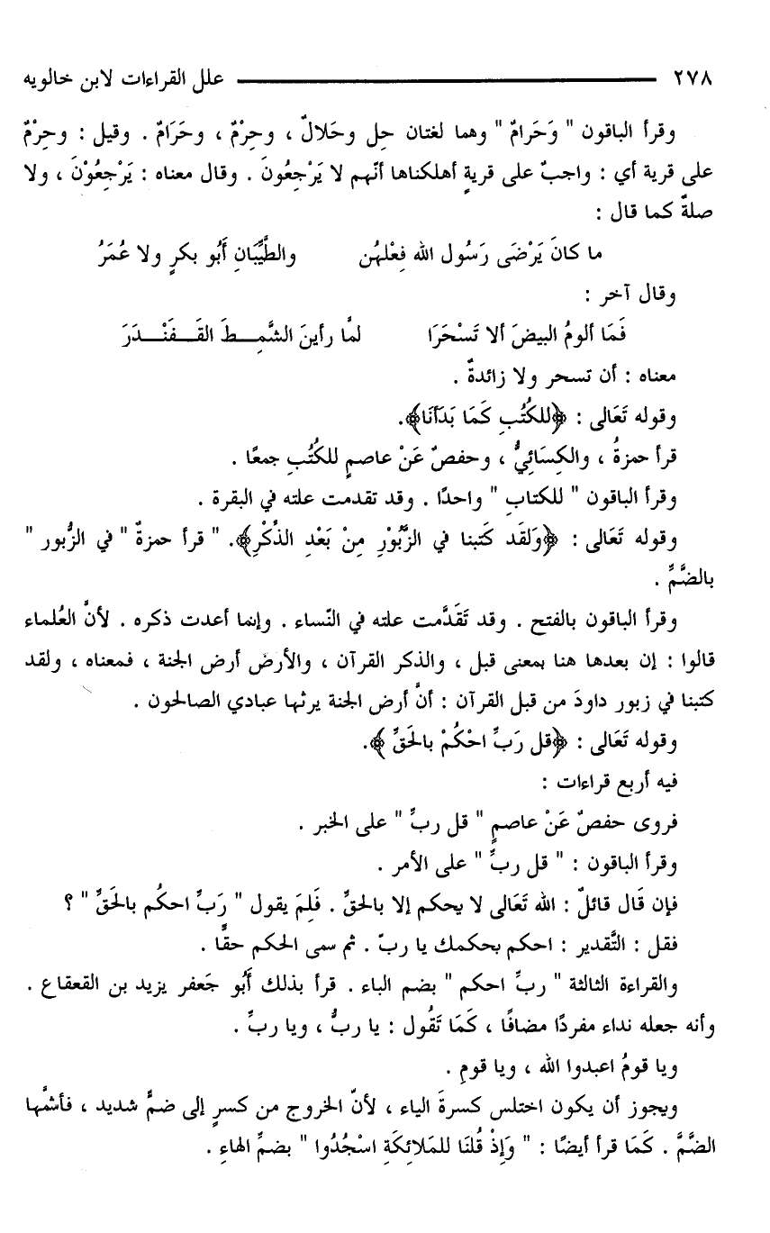 وقرأ الباقون «وَحَرامٌ» وهما لُغتان حِلُّ وحَلالٌ، وحِرْمٌ، وحْرَامٌ. وقيل: وحِرْمٌ على قرية أي: واجب على قرية أهلكناها أنهم لا يرجعون. وقال معناه: يرجعون، ولا صلةٌ كما قال: