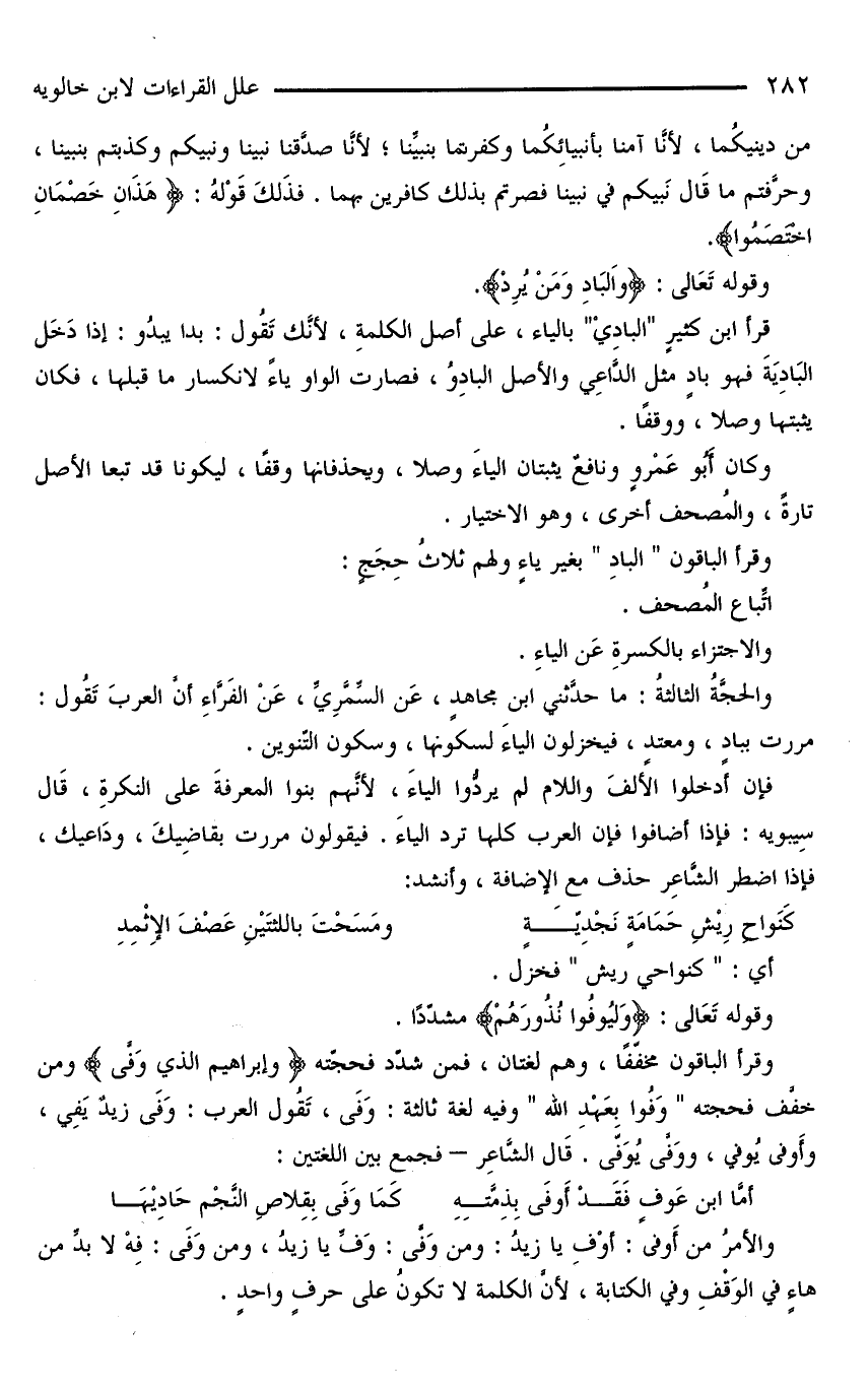 وقرأ الباقون «البادِ» بغير ياءٍ ولهم ثلاثُ حِجَجٍ: