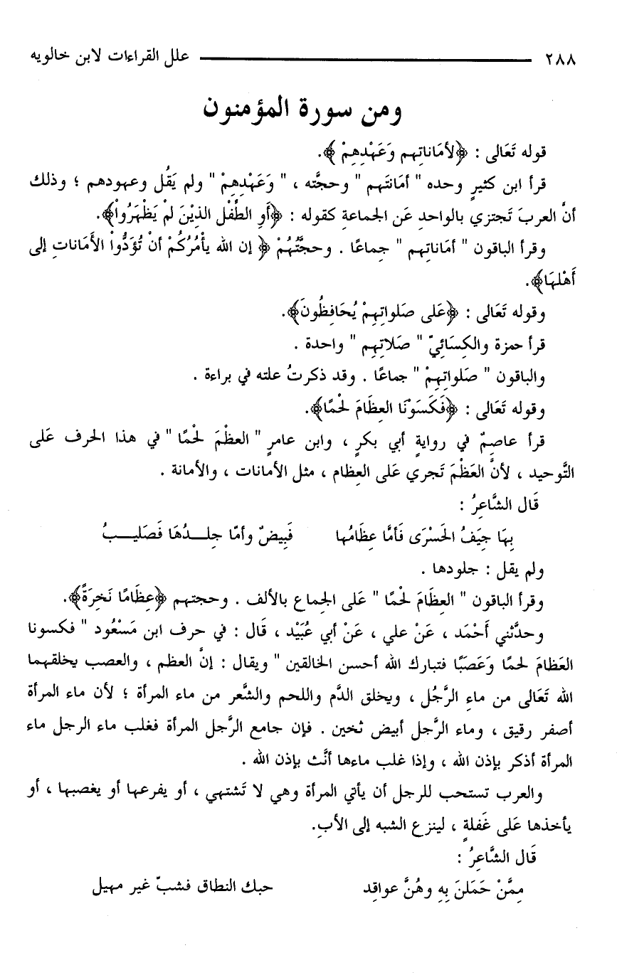 قرأ ابن كثير وحده «أمانتهم» وحجَّته، «وَعَهْدِهِمْ» ولم يَقُلْ وعهودهم؛ وذلك أنَّ العربَ تَجتزي بالواحدِ عَنْ الجماعةِ كقوله: {أَوِ الطفل الذين لم يظهروا}.