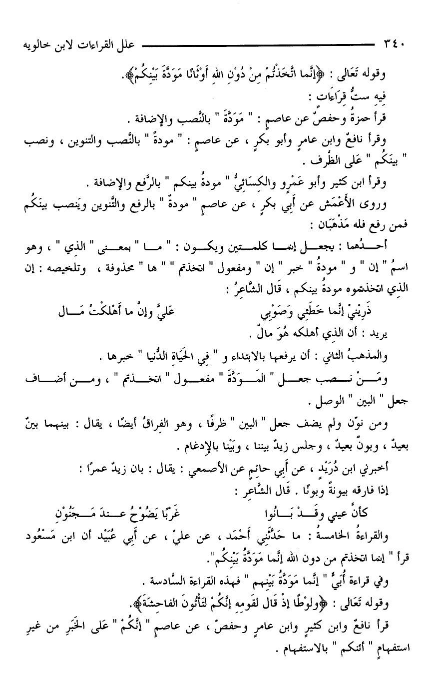 وفي قراءة أُبَيِّ «إنَّما مَوَدَّةُ بَيْنِهم» فهذه القراءة السَّادسة.