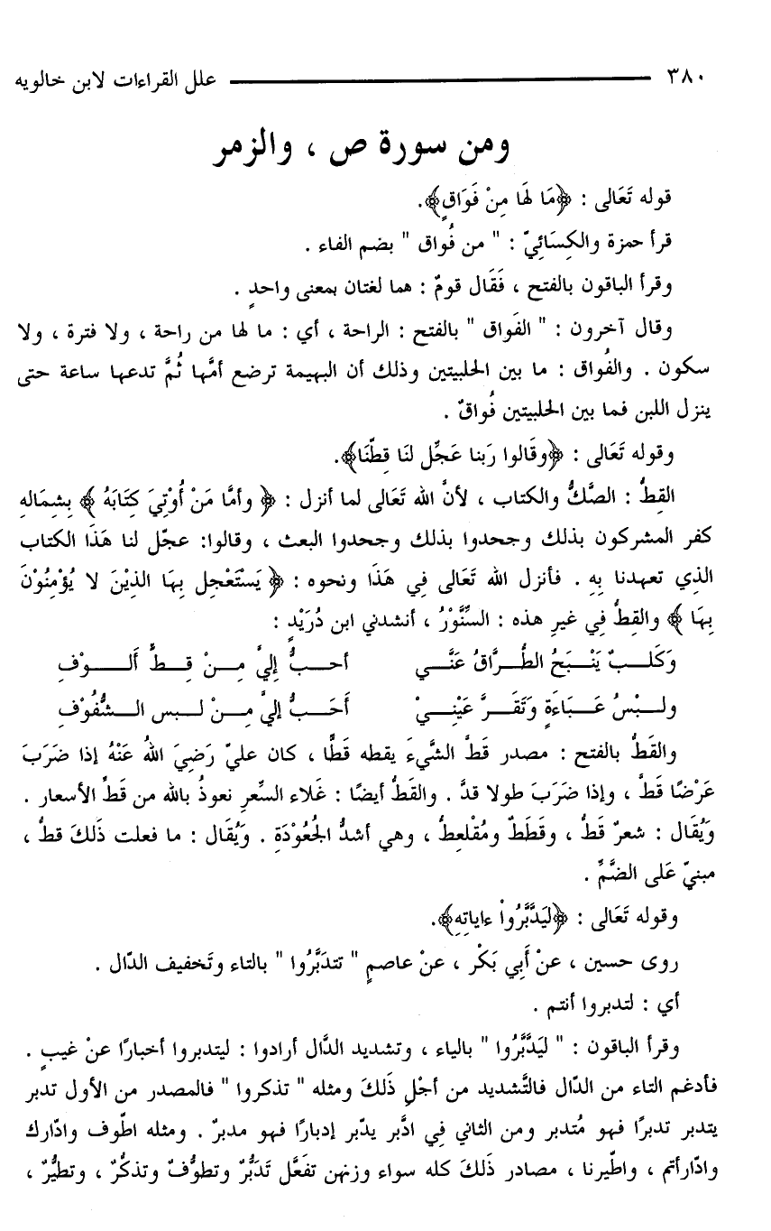 قرأ حمزة والكِسَائِيّ: «من فُواق» بضم الفاء.