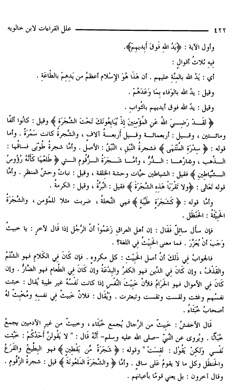 قَالَ الأخفشُ: خَبِيثٌ من الرِّجال يُجمع خُبَثَاء، وخبيثٌ من غيرِ الآدميين يجمعُ خُبَاْثًا. ويُروى عنْ النَّبيّ - صَلَّى اللَّهُ عَلَيْهِ وَسَلَّمَ - أَنَّهُ قَالَ: «لَا يَقُولَنَّ أَحَدُكُمْ: خَبُثتُ نَفْسي وَلكِنْ يَقُوْلُ: لَقِسَتْ» وقولُه: {شَجَرَةً مِّن يَقْطِينٍ} فهو البِطِّيخُ والقَرَعُ والحَنظَلُ وكلُّ ما لا يقوم على ساق. وأما {والشجرة المَلعُونَةَ} قيل: شجرةُ الزَّقُّومِ.