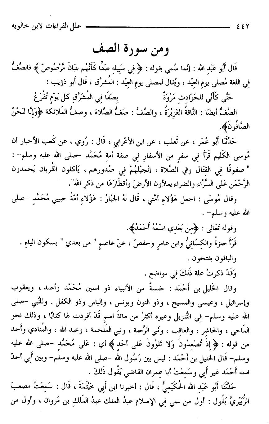 قَالَ أَبُو عَبْدِ اللَّه: إنّما سُمى بقوله: {فِي سَبِيلِهِ صَفًّا كَأَنَّهُم بُنيَانٌ مَّرْصُوصٌ} فالصَفُّ فِي اللُّغة مُصلى يومِ العِيْد، ويُقال لمصلى يومِ العِيْد: المُشرَّق، قَالَ أَبو ذؤيب: