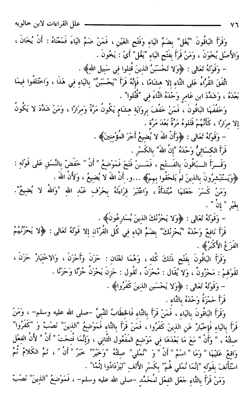 كتاب إعراب القراءات السبع وعللها ط العلمية