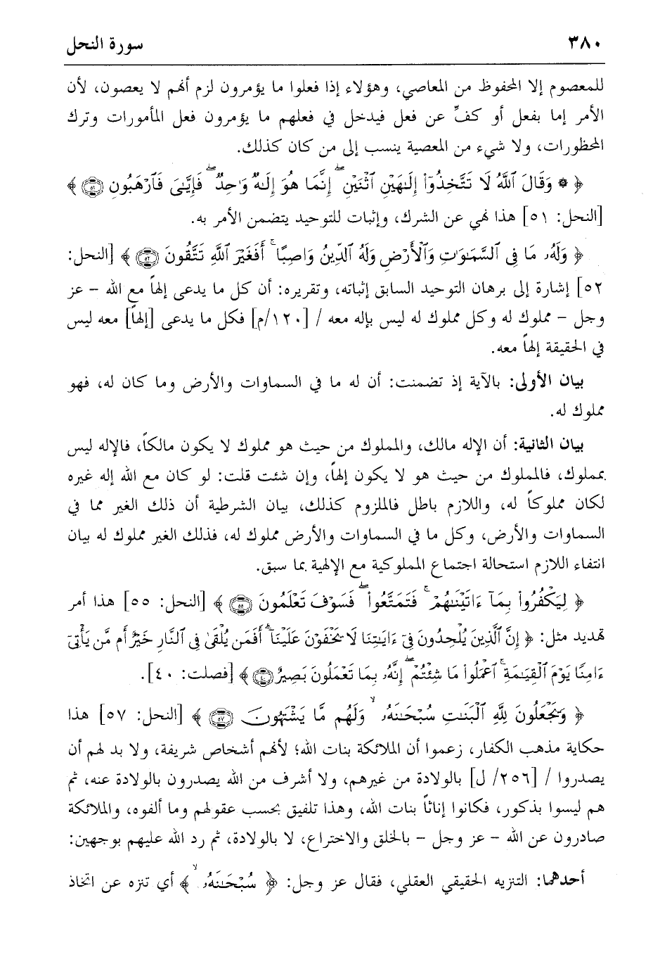 ٥٢] إشارة إلى برهان التوحيد السابق إثباته، وتقريره: أن كل ما يدعى إلها مع الله-عز وجل-مملوك له وكل مملوك له ليس بإله معه/ [١٢٠/م] فكل ما يدعى [إلها] معه ليس في الحقيقة إلها معه.
