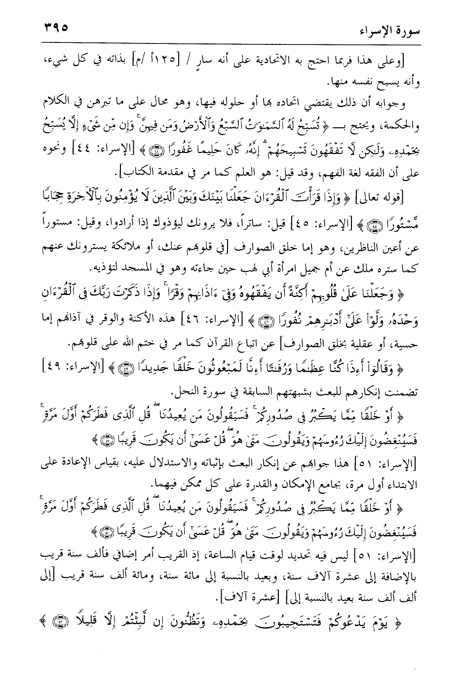وجوابه أن ذلك يقتضي اتحاده بها أو حلوله فيها، وهو محال على ما تبرهن في الكلام والحكمة، ويحتج ب {تُسَبِّحُ لَهُ السَّماواتُ السَّبْعُ وَالْأَرْضُ وَمَنْ فِيهِنَّ وَإِنْ مِنْ شَيْءٍ إِلاّ يُسَبِّحُ بِحَمْدِهِ وَلكِنْ لا تَفْقَهُونَ تَسْبِيحَهُمْ إِنَّهُ كانَ حَلِيماً غَفُوراً} (٤٤) [الإسراء: ٤٤] ونحوه على أن الفقه لغة الفهم، وقد قيل: هو العلم كما مر في مقدمة الكتاب].