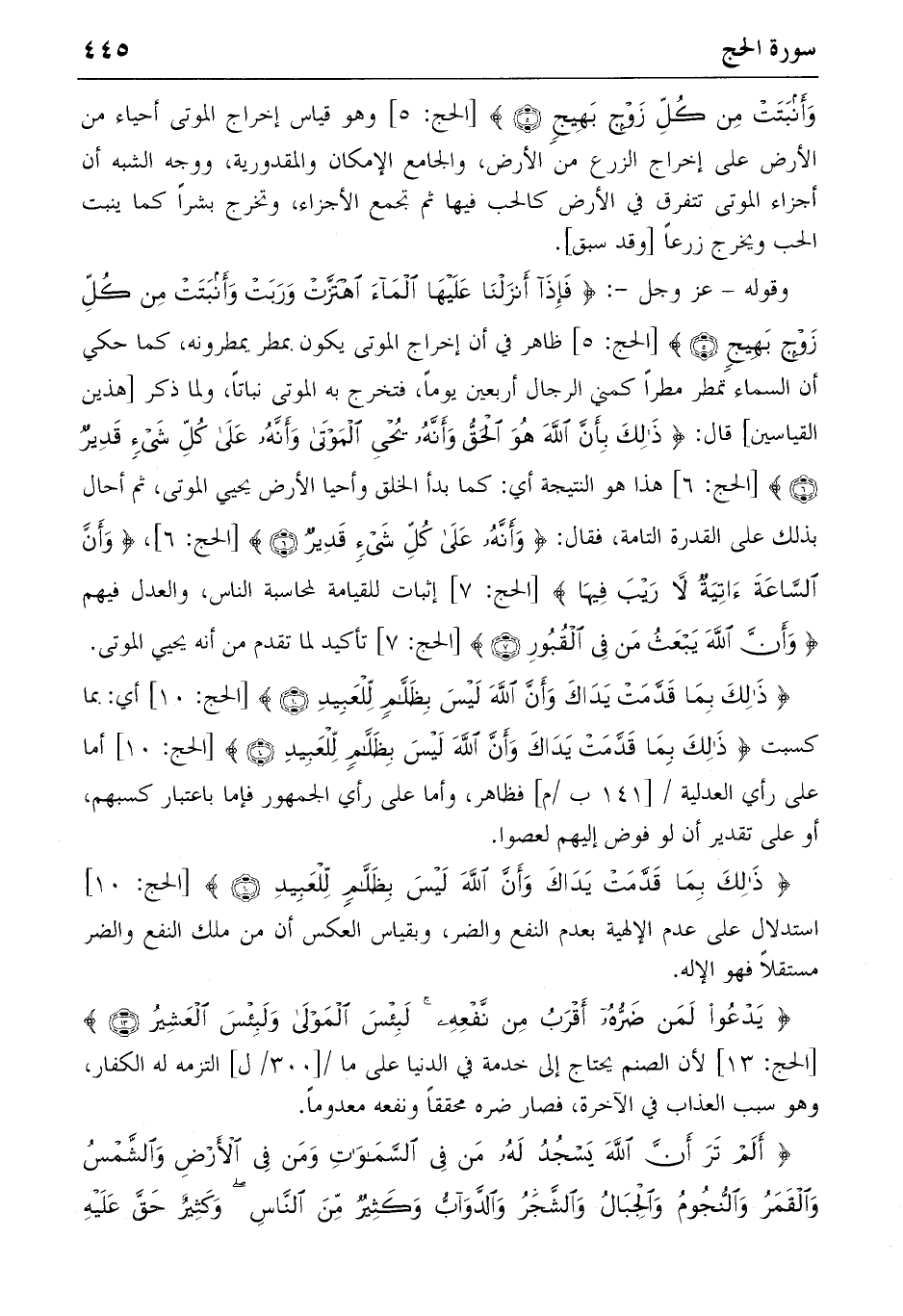{ذلِكَ بِما قَدَّمَتْ يَداكَ وَأَنَّ اللهَ لَيْسَ بِظَلاّمٍ لِلْعَبِيدِ} (١٠) [الحج: ١٠] استدلال على عدم الإلهية بعدم النفع والضر، وبقياس العكس أن من ملك النفع والضر مستقلا فهو الإله.