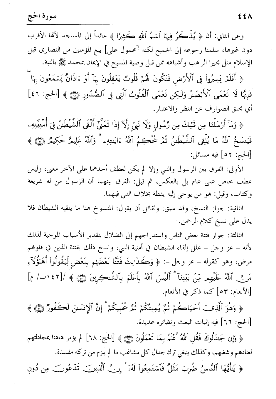 {وَما أَرْسَلْنا مِنْ قَبْلِكَ مِنْ رَسُولٍ وَلا نَبِيٍّ إِلاّ إِذا تَمَنّى أَلْقَى الشَّيْطانُ فِي أُمْنِيَّتِهِ فَيَنْسَخُ اللهُ ما يُلْقِي الشَّيْطانُ ثُمَّ يُحْكِمُ اللهُ آياتِهِ وَاللهُ عَلِيمٌ حَكِيمٌ} (٥٢) [الحج: ٥٢] فيه مسائل: