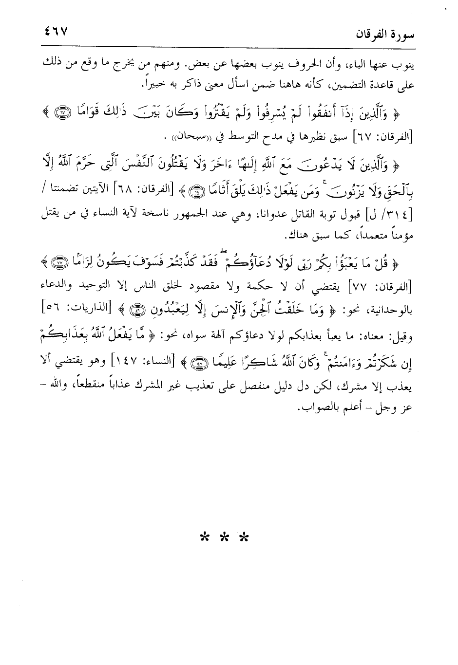 {وَالَّذِينَ إِذا أَنْفَقُوا لَمْ يُسْرِفُوا وَلَمْ يَقْتُرُوا وَكانَ بَيْنَ ذلِكَ قَواماً} (٦٧) [الفرقان: ٦٧] سبق نظيرها في مدح التوسط في «سبحان».