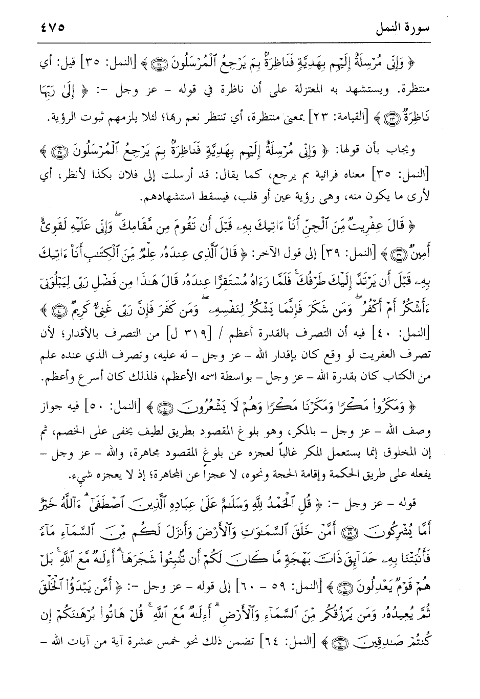 {وَإِنِّي مُرْسِلَةٌ إِلَيْهِمْ بِهَدِيَّةٍ فَناظِرَةٌ بِمَ يَرْجِعُ الْمُرْسَلُونَ} (٣٥) [النمل: ٣٥] قيل: أي منتظرة. ويستشهد به المعتزلة على أن ناظرة في قوله-عز وجل-: {إِلى رَبِّها ناظِرَةٌ} (٢٣) [القيامة: ٢٣] بمعنى منتظرة، أي تنتظر نعم ربها؛ لئلا يلزمهم ثبوت الرؤية.