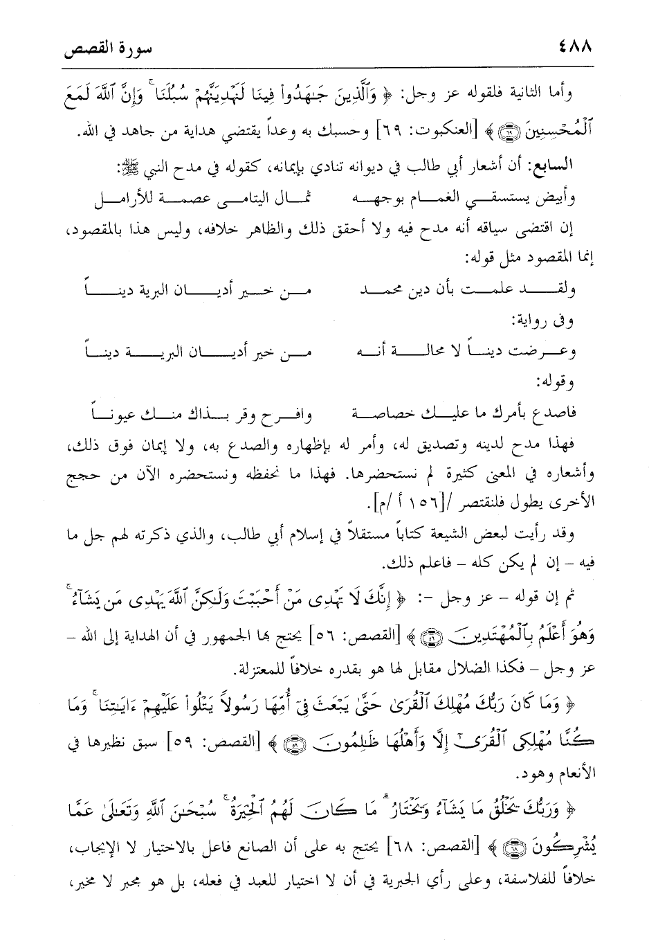 وقد رأيت لبعض الشيعة كتابا مستقلا في إسلام أبي طالب، والذي ذكرته لهم جل ما فيه-إن لم يكن كله-فاعلم ذلك.