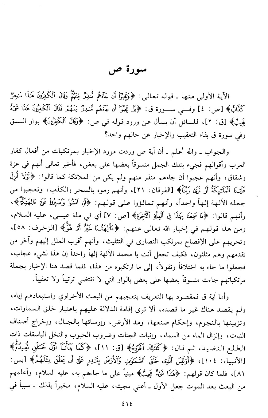 وأما آية ق فمقصود بها التعريف بتعجبهم من البعث الأخراوي واتسبعادهم إياه، ولم يقصد هناك غير ما قصده، ألا ترى إقامة الدلالة عليهم باعتبار خلق السماوات، وتزيينها بالنجوم، وإحكام صنعها، ومد الأرض، وإرسائها بالجبال، وإخراج أصناف النبات، وإنزال الماء من السماء، وإنبات الجنات وضروب الحبوب والنخل الباسقات ذات الطلع النضيد، ثم قال: (كَذَلِكَ الْخُرُوجُ) (ق: 11)، (كَمَا بَدَأْنَا أَوَّلَ خَلْقٍ نُعِيدُهُ) (الأنبياء: 104)، (أَوَلَيْسَ الَّذِي خَلَقَ السَّمَاوَاتِ وَالْأَرْضَ بِقَادِرٍ عَلَى أَنْ يَخْلُقَ مِثْلَهُمْ) (يس: 81)، فلما كان قولهم: (هَذَا شَيْءٌ عَجِيبٌ) مبيناً على ما جاءهم به، عليه السلام، وأعلمهم من البعث بعد الموت جعل الأول - أعني مجيئه، مخبراً بذلك - سبباً في