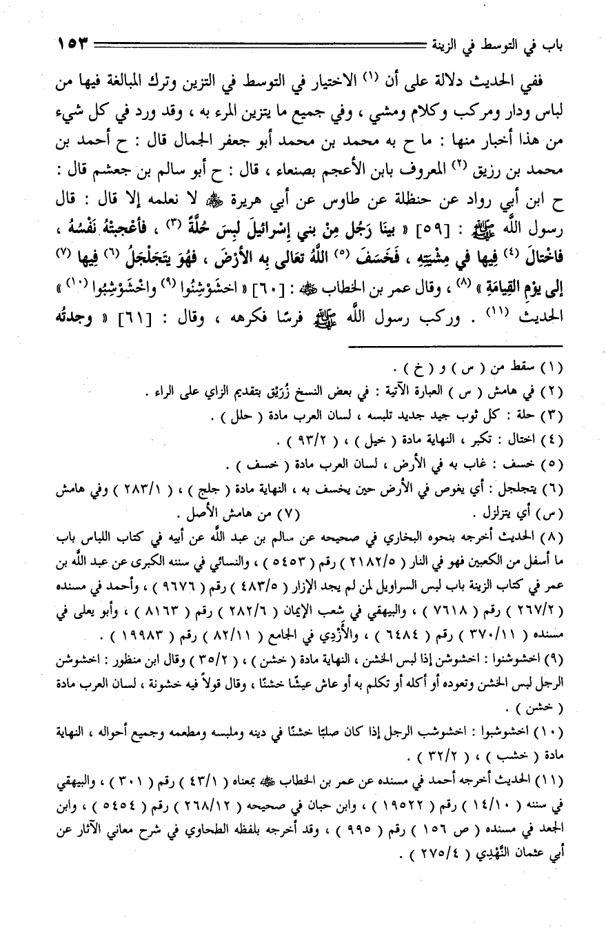 59 - حَدَّثَنا مُحَمَّدُ بْنُ مُحَمَّدٍ أَبُو جعفر الْجَمَّالُ، قال: حَدَّثَنَا أَحْمَدُ بْنُ مُحَمَّدِ بْنِ زُرَيْقٍ الْمَعْرُوفُ بِابْنِ الْأَعْجَمِ بِصَنْعَاءَ، قال: حَدَّثَنا أَبُو سَالِمِ بْنُ جُعْشُمٍ، قال: حَدَّثَنَا ابْنُ أَبِي رَوَّادٍ , عَنْ حَنْظَلَةَ , عَنْ طَاوُوسٍ , عَنْ أَبِي هُرَيْرَةَ، لَا نَعْلَمُهُ إِلَّا قال: قَالَ رَسُولُ اللَّهِ صلى الله عليه وسلم: " بَيْنَا رَجُلٌ في بَنِي إِسْرَائِيلَ لَبِسَ حُلَّةً فَأَعْجَبَتْهُ نَفْسُهُ , فَاخْتَالَ فِيهَا فِي مِشْيَتِهِ , فَخَسَفَ اللَّهُ بِهِ الْأَرْضَ , فَهُوَ يَتَجَلْجَلُ فِيهَا إِلَى يَوْمِ الْقِيَامَةِ ".