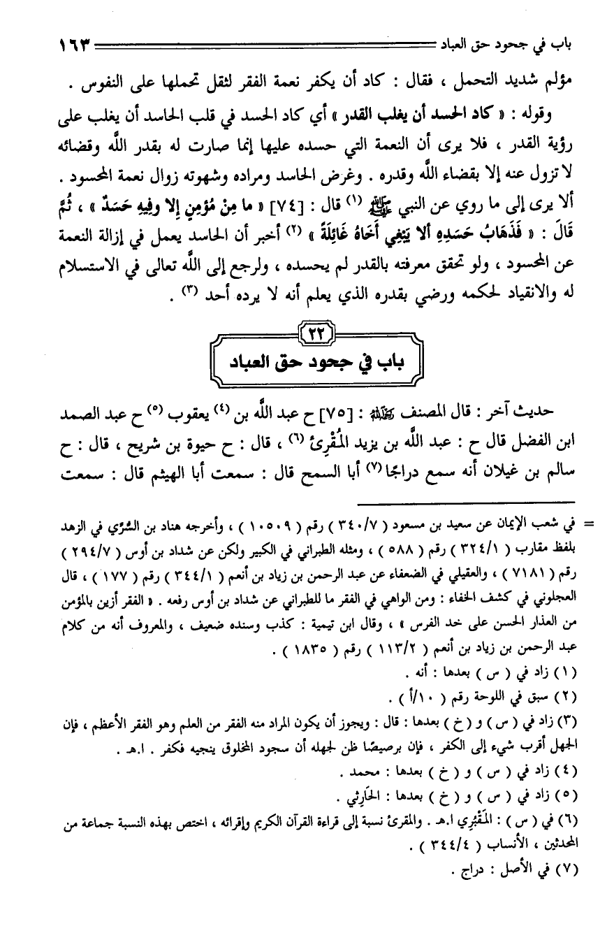 75 - حَدَّثَنَا عَبْدُ اللَّهِ بْنُ مُحَمَّدِ بْنِ يَعْقُوبَ الْحَارِثِيُّ، قال: حَدَّثَنا عَبْدُ الصَّمَدِ بْنُ الْفَضْلِ، قال: حَدَّثَنا عَبْدُ اللَّهِ بْنُ يَزِيدَ الْمقرِئ، قال: حَدَّثَنا حيوة بْنُ شُرَيْحٍ، قال: حَدَّثَنا سَالِمُ بْنُ غَيْلَانَ، أَنَّهُ سَمِعَ دَرَّاجاً أَبَا السَّمْحِ , قال: سَمِعْتُ أَبَا الْهَيْثَمِ , قال: سَمِعْتُ أَبَا سَعِيدٍ الْخُدْرِيَّ , قال: سَمِعْتُ رَسُولَ اللَّهِ صلى الله عليه وسلم، يَقُولُ: " تَعَوَّذُوا بِاللَّهِ مِنَ الْكُفْرِ وَالدَّيْنِ، فَقَالَ رَجُلٌ: يَا رَسُولَ اللَّهِ، أَتعْدلُ الْكُفْرُ بِالدَّيْنِ؟ قال: نَعَمْ ".