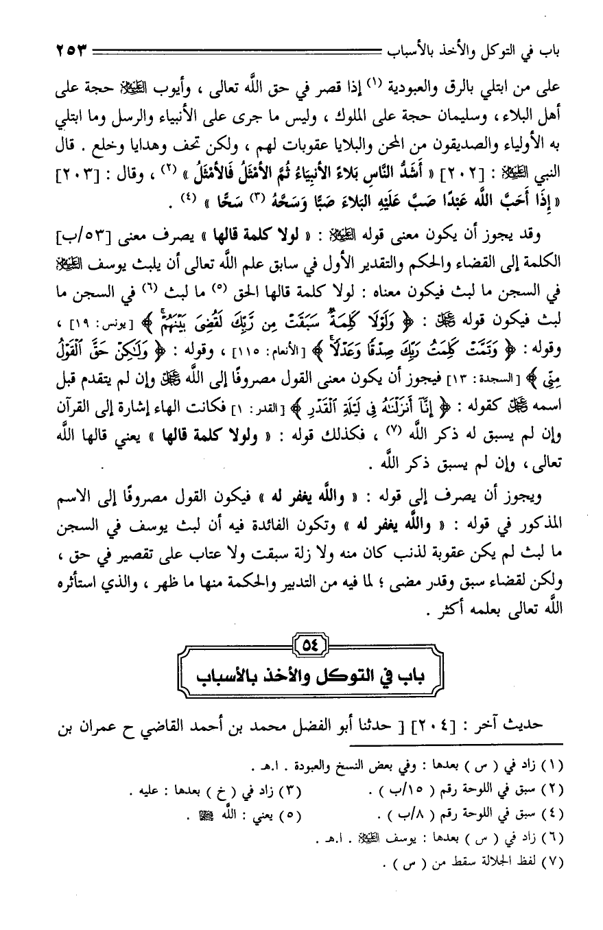 204 - حدثنا أبو الفضل محمد بن أحمد القاضي، حدثنا عمران بن موسى الجرجاني، حَدَّثَنَا إِبْرَاهِيمُ بْنُ الْمُنْذِرِ الْحِزَامِيُّ , حَدَّثَنا عبيد اللَّهِ بْنُ مُوسَى التَّيْمِيُّ، حَدَّثَنا يَعْقُوبُ بْنُ عَبْدِ اللَّهِ بْنِ عَمْرِو بْنِ أُمَيَّةَ الضَّمْرِيُّ , عَنْ جَعْفَرِ بْنِ عَمْرٍو , عَنْ أَبِيهِ عَمْرِو بْنِ أُمَيَّةَ، قال: قُلْتُ: يَا رَسُولَ اللَّهِ , أُرْسِلُ نَاقَتِي وَأَتَوَكَّلُ؟ أَوْ أُقَيِّدُ وَأَتَوَكَّلُ؟ " بَلْ قَيِّدْ , وَتَوَكَّلْ ".