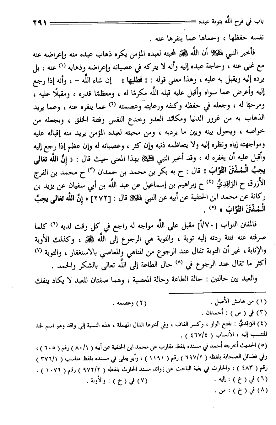 272 - حَدَّثَنَا بَكْرُ بْنُ مُحَمَّدِ بْنِ حَمْدَانَ، حَدَّثَنا مُحَمَّدُ بْنُ الْفَرَجِ الْأَزْرَقُ، حَدَّثَنا الْوَاقِدِيُّ، حَدَّثَنا إِبْرَاهِيمُ بْنُ إِسْمَاعِيلَ , عَنْ عَبْدِ اللَّهِ بْنِ أَبِي سُفْيَانَ , عَنْ يَزِيدَ بْنِ رُكَانَةَ , عَنْ مُحَمَّدِ بْنِ الْحَنَفِيَّةِ , عَنْ أَبِيهِ , عَنِ النَّبِيِّ عليه السلام قال: " إِنَّ اللَّهَ تعالى يُحِبُّ الْمُفَتَّنَ التَّوَّابَ ".