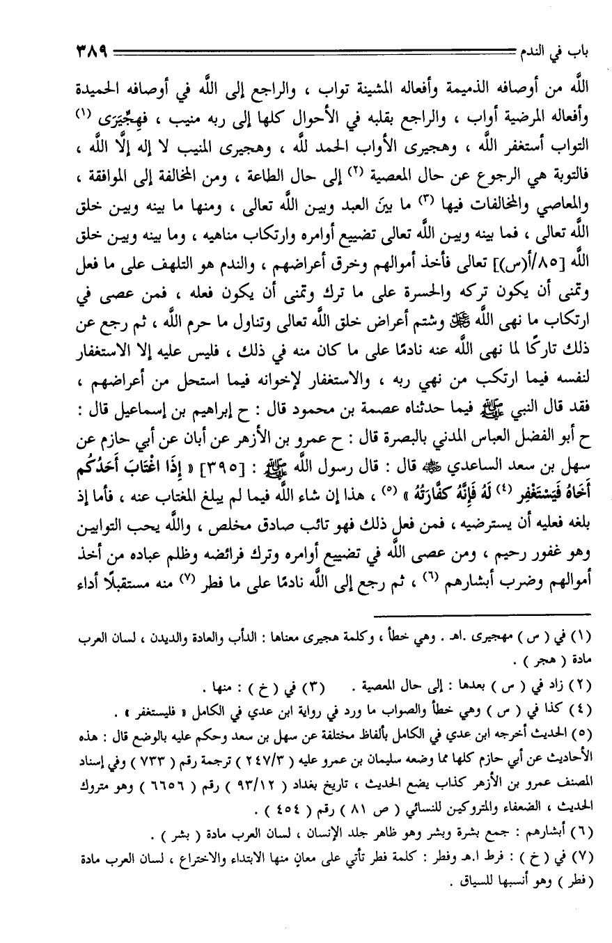 395 - حَدَّثَنَاهُ عِصمَةُ بْنُ مَحْمُودٍ , حَدَّثَنا إِبْرَاهِيمُ بْنُ إِسْمَاعِيلَ، حَدَّثَنا أَبُو الْفَضْلِ الْعَبَّاسُ الْمَدَنِيُّ بِالْبَصْرَةِ، حَدَّثَنا عَمْرُو بْنُ الْأَزْهَرِ , عَنْ أَبَانَ , عَنْ أَبِي حَازِمٍ , عَنْ سَهْلِ بْنِ سَعْدٍ السَّاعِدِيِّ - رضي الله عنه -، قَالَ: قال رَسُولُ اللَّهِ - صلى الله عليه وسلم -: " إِذَا اغْتَابَ أَحَدُكُمْ أَخَاهُ , فَلْيَسْتَغْفِرْ لَهُ , فَإِنَّهُ كَفَّارَتُهُ ".