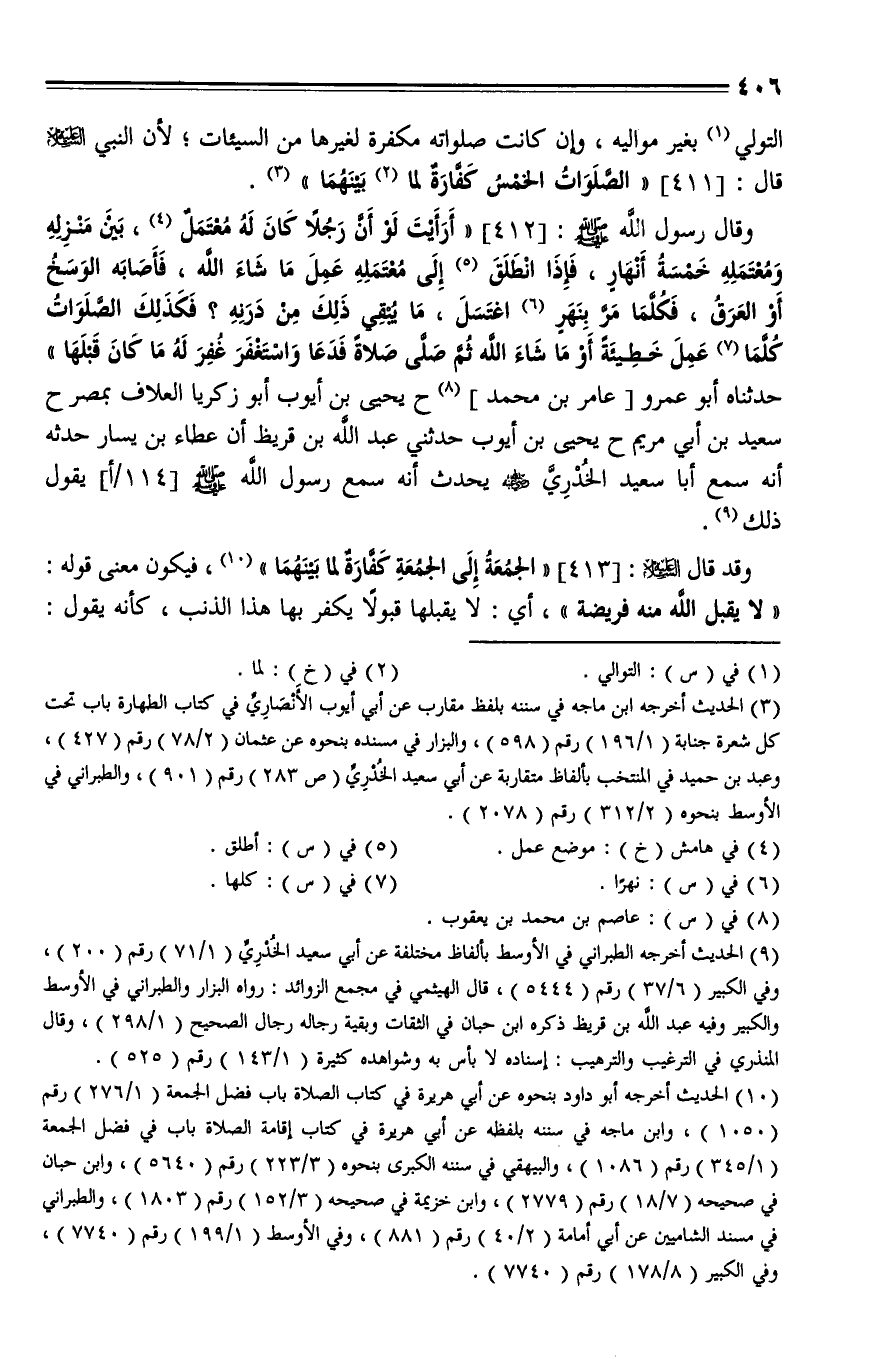 412 - وَقَالَ رسول الله عليه السلام: " أَرَأَيْتَ لَوْ أَنَّ رَجُلًا كَانَ (ق121ب) لَهُ مُعْتَمَلٌ بَيْنَ مَنْزِلِهِ , وَبَيْنَ مُعْتَمَلِهِ خَمْسَةُ أَنْهَارٍ , فَإِذَا انْطَلَقَ إِلَى مُعْتَمَلِهِ عَمِلَ مَا شَاءَ اللَّهُ , فَأَصَابَهُ الْوَسَخُ , أوَالْعَرَقُ , فَكُلَّمَا مَرَّ بِنَهَرٍ اغْتَسَلَ مَا يُبْقِي ذَلِكَ مِنْ دَرَنِهِ , فَكَذَلِكَ الصَّلَوَاتُ كُلّما عَمِلَ خَطِيئَةً , أَوْ مَا شَاءَ اللَّهُ , ثُمَّ صَلَّى صَلَاةً , فَدَعَا , وَاسْتَغْفَرَ غُفِرَ لَهُ مَا كَانَ قَبْلَهُ ".