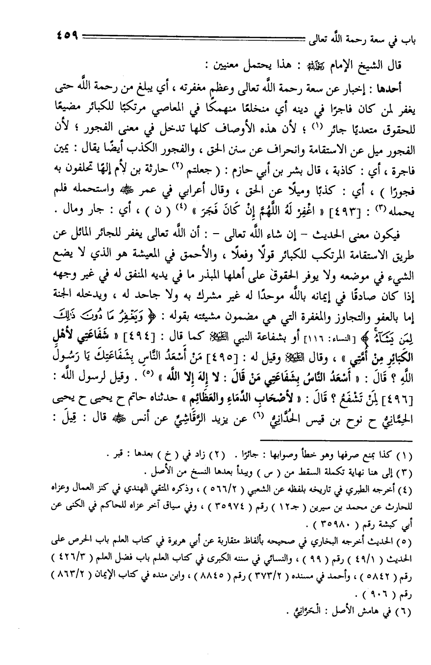 496 - حَدَّثَنَا حَاتِمُ , حَدَّثَنا يَحْيَى، حَدَّثَنا يَحْيَى الحماني، حَدَّثَنَا نُوحُ بْنُ قَيْسٍ الْحُدَّانِيُّ , عَنْ يَزِيدَ الرَّقَاشِيِّ , عَنْ أَنَسِ - رَضِيَ اللَّهُ عَنْهُ - قال: " قِيلَ: يَا رَسُولَ اللَّهِ، لِمَنْ تَشْفَعُ؟ قال: لِأَصْحَابِ الدِّمَاءِ وَالْعَظَائِمِ ".