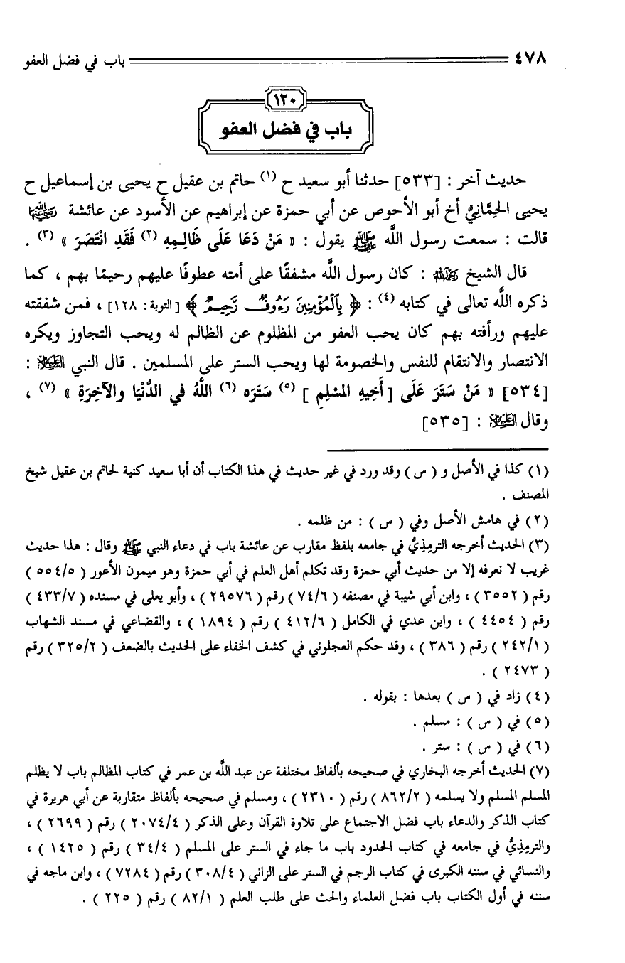 533 - حدثنا أَبُو سَعِيدٍ، حدثنا حَاتِمُ بْنُ عَقِيلٍ، حَدَّثَنا يَحْيَى بْنُ إِسْمَاعِيلَ، حَدَّثَنا يَحْيَى الْحِمَّانِيُّ، أَخْبَرَنَا أَبُو الْأَحْوَصِ , عَنْ أَبِي حَمْزَةَ , عَنْ إِبْرَاهِيمَ , عَنِ الْأَسْوَدِ , عَنْ عَائِشَةَ , رَضِيَ اللَّهُ عَنْهَا قَالَتْ: سَمِعْتُ رسول الله صلى الله عليه وسلم يَقُولُ: " مَنْ دَعَا عَلَى مَنْ ظَلَمَهُ فَقَدِ انْتَصَرَ ".