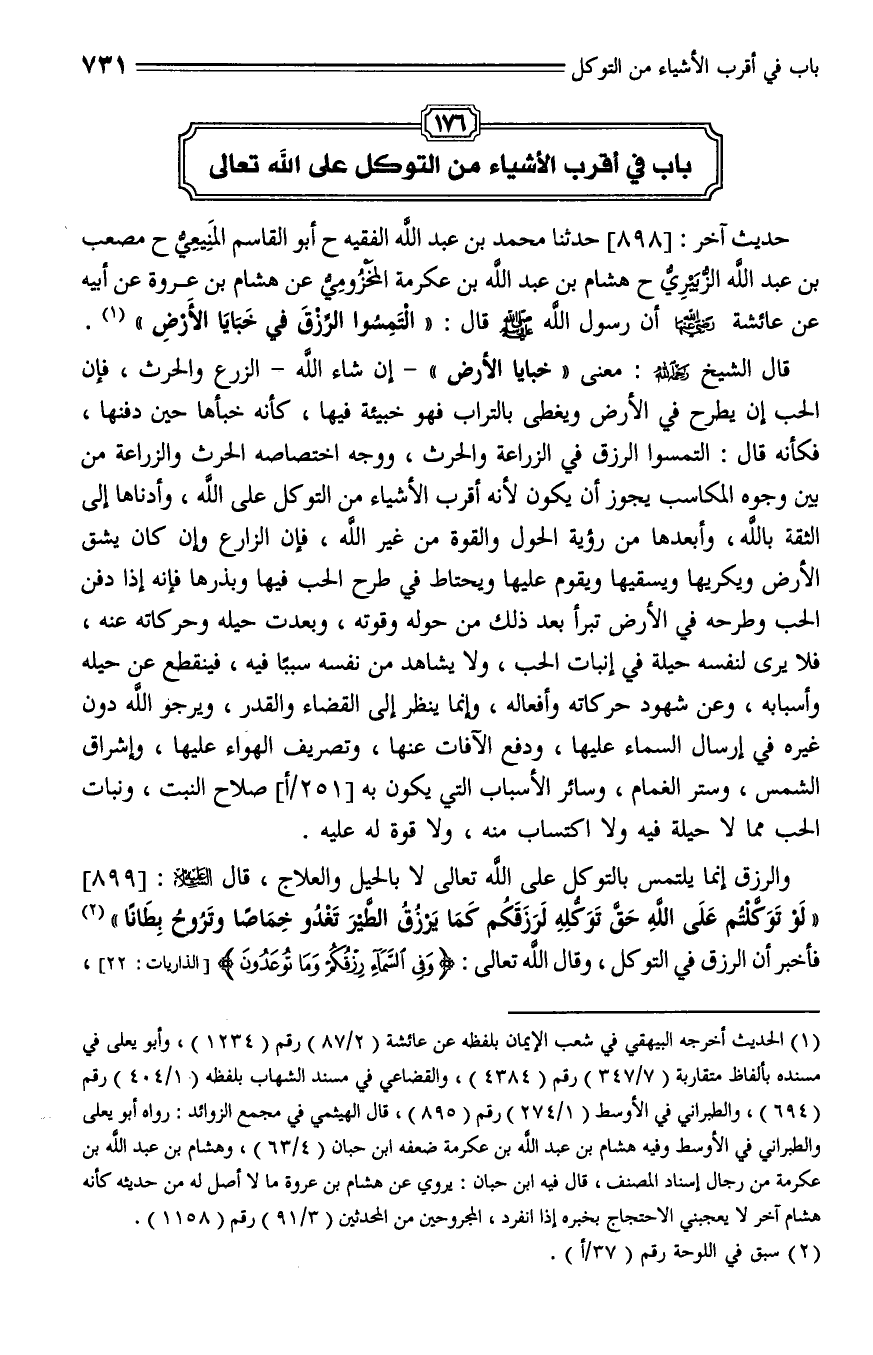 898 - حدثنا محمد بن عبد الله الفقيه، حدثنا أبو القاسم المنيعي، حدثنا مصعب بن عبد الله الزبيري، حدثنا هشام بن عبد الله بن عكرمة المخزومي، عن هشام بن عروة، عن أبيه، عن عائشة - رضي الله عنه - أن رسول الله - صلى الله عليه وسلم - قال: " التمسوا الرزق في خبايا الأرض ".