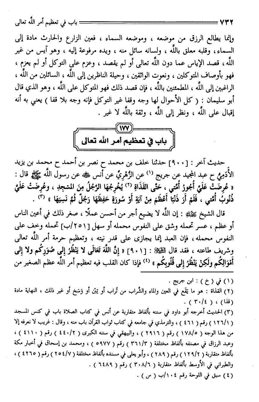 900 - حدثنا خلف بن محمد، حدثنا نصر بن أحمد، حدثنا محمد بن يزيد الأدمي، حدثنا عبد المجيد، عن جريج، عن الزهري، عن أنس - رضي الله عنه - عن رسول الله صلى الله عليه وسلم، قال: " عرضت علي أجور أمتي، حتى القذاة يخرجها الرجل من المسجد، وعرضت علي ذنوب أمتي، فلم أر ذنبا أعظم من آية أو سورة حفظها رجل ثم نسيها "