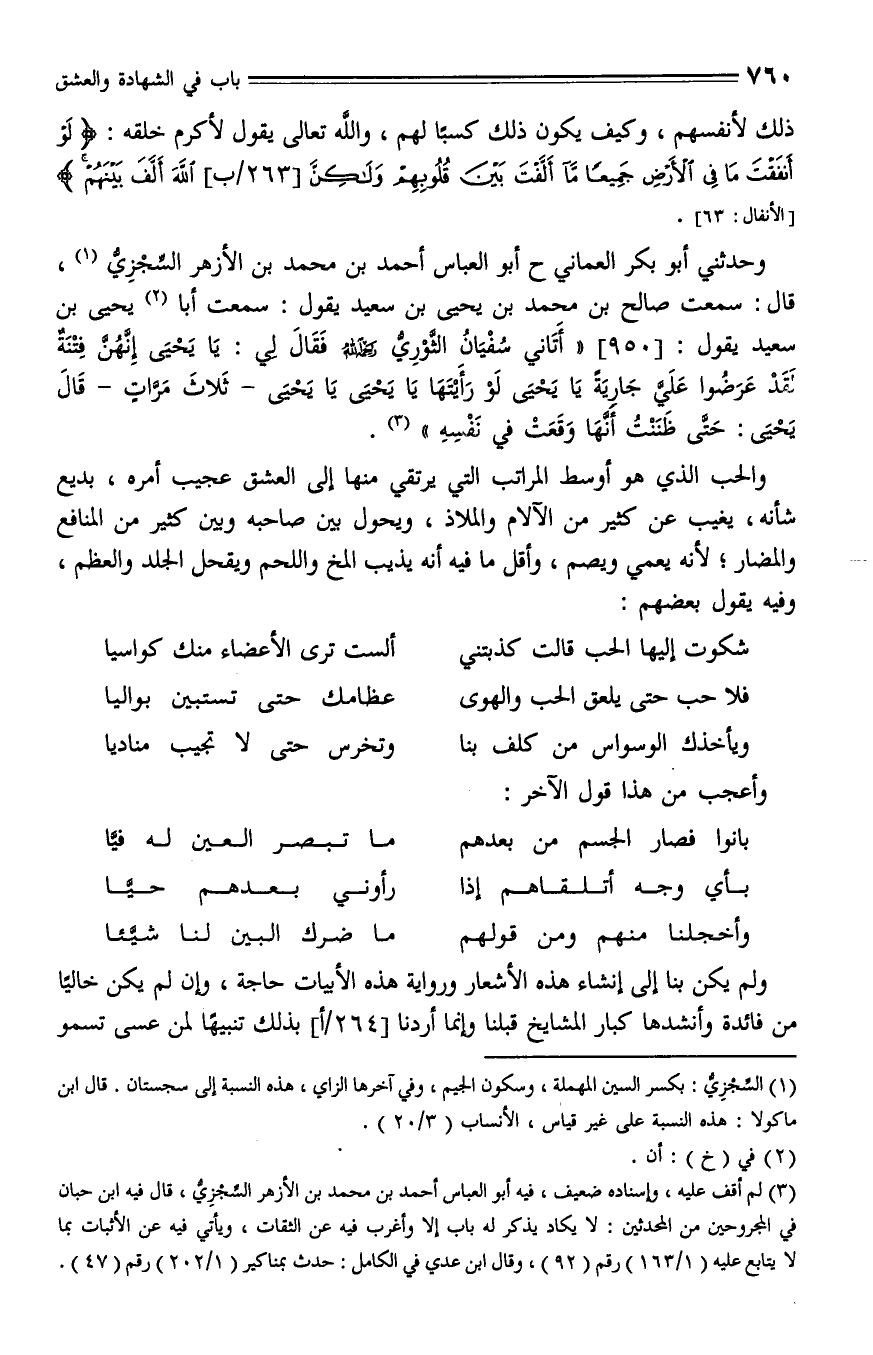 950 - وحدثني أبو بكر العماني، حدثنا أبو العباس أحمد بن محمد بن الأزهر السجزي، قال: سمعت صالح بن محمد بن يحيى بن سعيد، يقول: سمعت أن يحيى بن سعيد يقول: " أتاني سفيان الثوري - رحمه الله - فقال لي: يا يحيى إنهن فتنة لقد عرضوا علي جارية يا يحيى لو رأيتها يا يحيى، يا يحيى - ثلاث مرات - قال يحيى: حتى ظننت أنها وقعت في نفسه ".