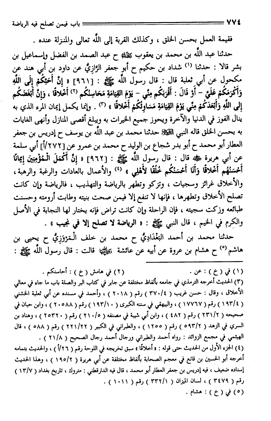 963 - حدثنا محمد بن أحمد البغدادي، حدثنا محمد بن خلف المروزي، حدثنا يحيى بن هاشم، حدثنا هشام بن عروة، عن أبيه، عن عائشة - رضي الله عنها - قالت: قال رسول الله - صلى الله عليه وسلم -: " لا تصلح الصنيعة إلا عند ذي حسب أو دين، كما أنَّ الرياضة لا تصلحُ إلا في نجيبٍ ".