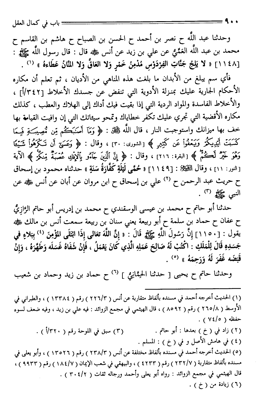 1148 - وحدثنا عبد الله، حدثنا نصر بن أحمد، حَدَّثنا الحسن بن الصباح، حَدَّثنا هاشم بن القاسم، حَدَّثنا مُحَمد بن عَبد الله العمي، عن علي بن زيد، عَن أَنَس - رضي الله عنه - قال: قال رَسُول اللهِ - صلى الله عليه وسلم -: " لا يلج جنان الفردوس مدمن خمر، ولاَ العاق، ولاَ المنان عطاءه ".