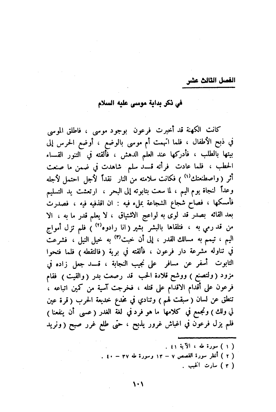 الْفَصْل الثَّالِث عشر فِي ذكر بداية مُوسَى عَلَيْهِ السَّلَام