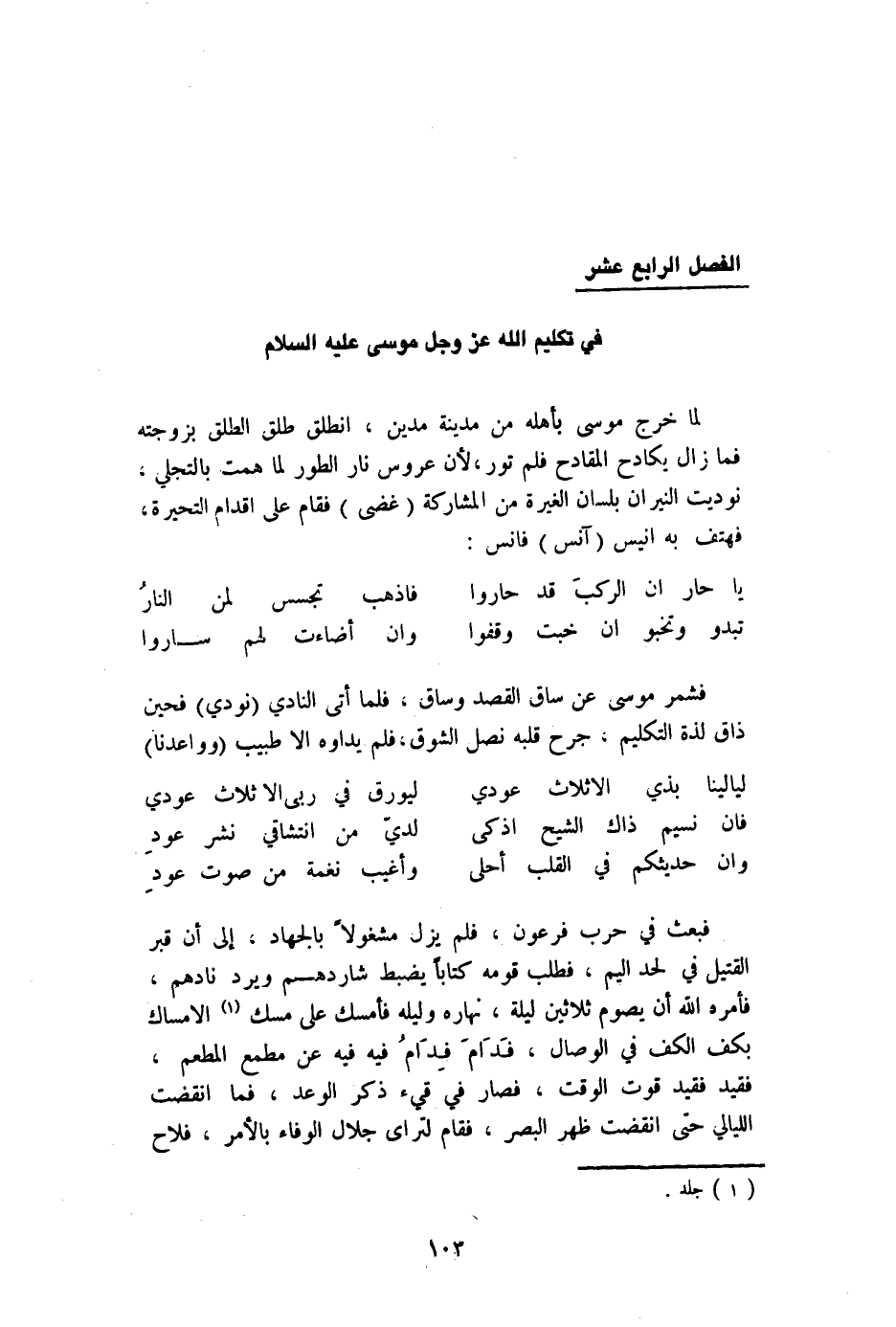 فشمر مُوسَى عَن سَاق الْقَصْد وسَاق فَلَمَّا أَتَى النادي {نُودي} فحين ذاق لَذَّة التكليم جرح قلبه نصل الشوق فَلم يداوه إِلَّا طَبِيب {وواعدنا}