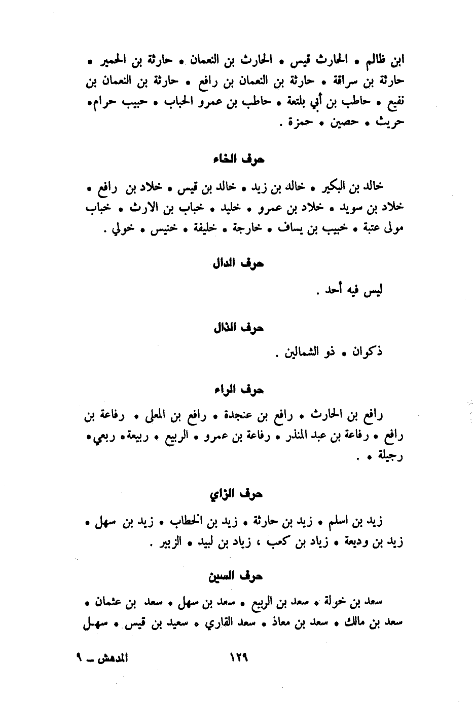 ابْن ظَالِم الْحَارِث قيس الْحَارِث بن النُّعْمَان حَارِثَة بن الْحمير حَارِثَة بن سراقَة حَارِثَة بن النُّعْمَان بن رَافع حَارِثَة بن النُّعْمَان بن نفيع حَاطِب بن أبي بلتعة حَاطِب بن عَمْرو الْحباب حبيب حرَام حُرَيْث حُصَيْن حَمْزَة