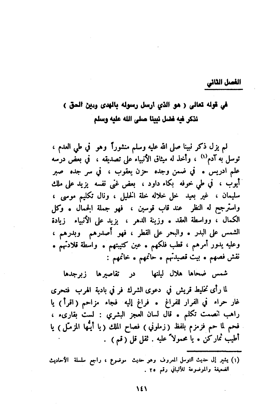 الْفَصْل الثَّانِي فِي قَوْله تَعَالَى {هُوَ الَّذِي أرسل رَسُوله بِالْهدى وَدين الْحق} نذْكر فِيهِ فضل نَبينَا صلى الله عَلَيْهِ وَسلم