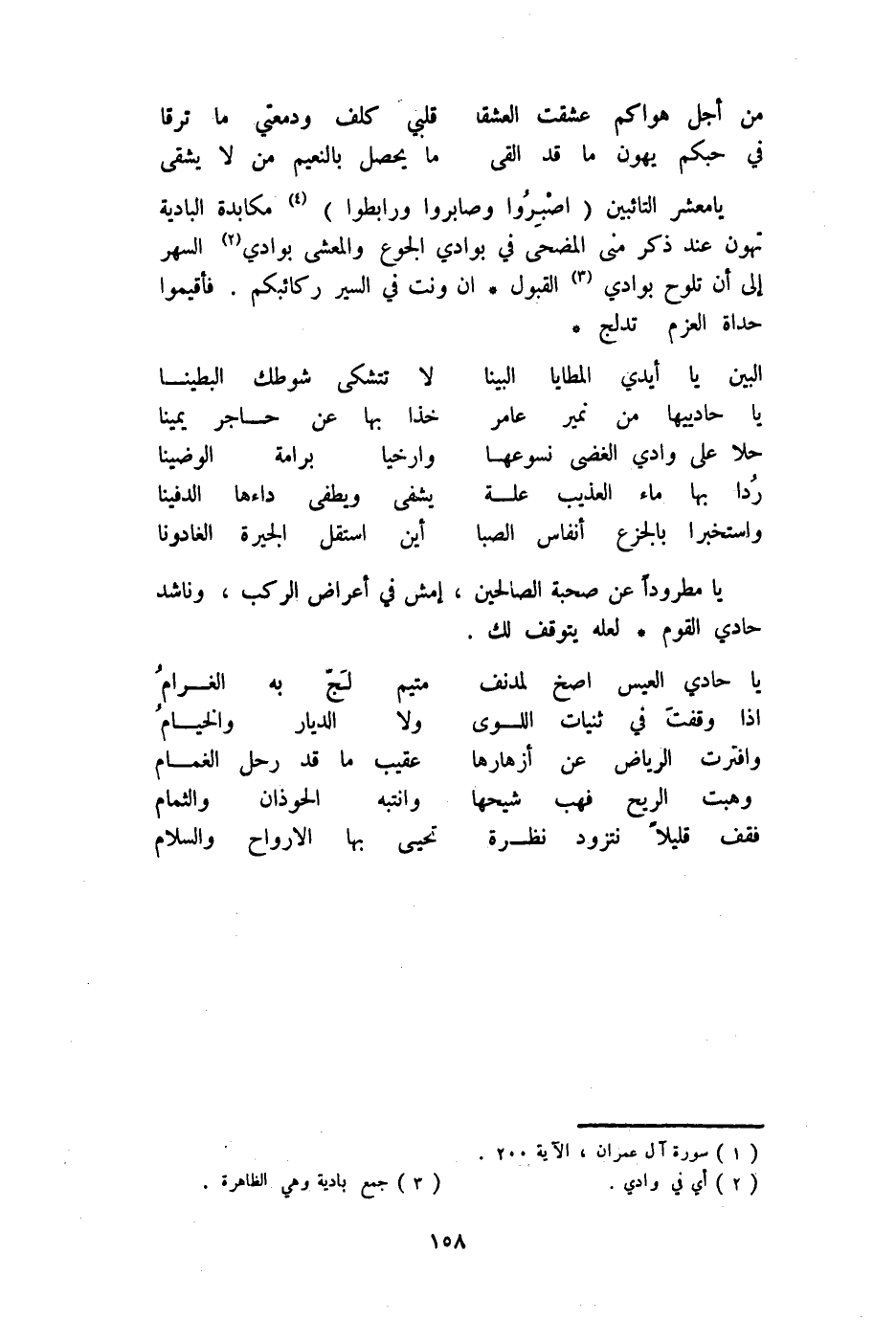 (يَا حادي العيس اصخ لمدنف ... متيم لج بِهِ الغرام)