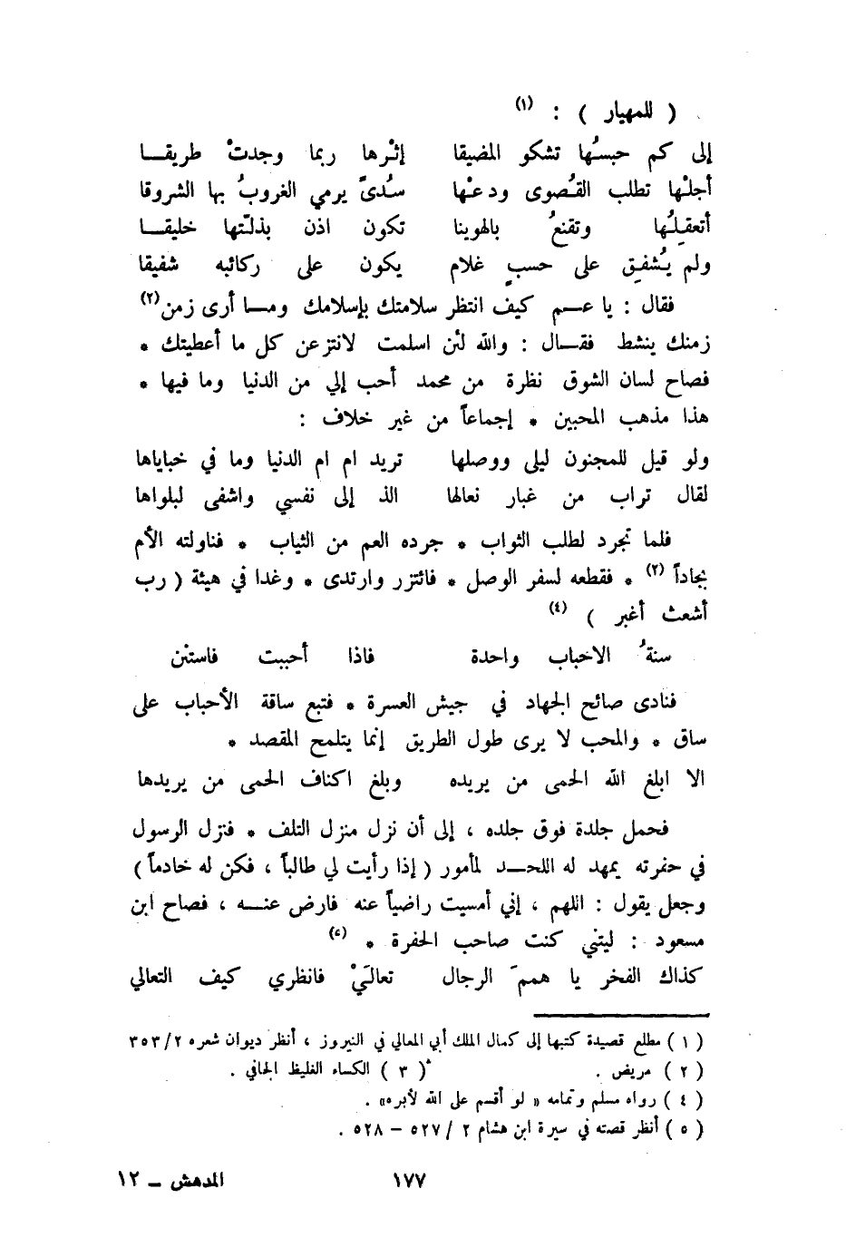 فَنَادَى صائح الْجِهَاد فِي جَيش الْعسرَة فتبع ساقة الأحباب على سَاق والمحب لَا يرى طول الطَّرِيق إِنَّمَا يتلمح الْمَقْصد